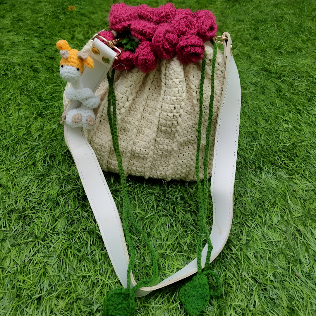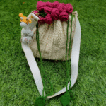 This crochet rose bag is giving soft girl vibes 🌹✨ Handmade beauty hits different! Designed with a delicate floral drawstring top and a textured crochet body, this handmade bag sling bag blends charm and comfort. Lightweight and eco-friendly, it is perfect for casual outings, brunch dates, and festive looks. Product size is 10 inches broad, offering enough space for daily essentials while keeping your style cute, elegant, and effortlessly trendy everywhere.