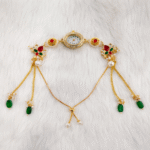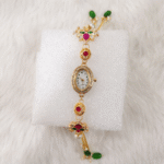 Enhance your ethnic style with this elegant women’s bracelet watch featuring a stunning floral design with colorful stones and pearl detailing. Crafted to resemble traditional jewelry, this wristwatch is perfect for weddings, festivals, and special occasions. Its lightweight and comfortable fit ensures all-day wear while adding a luxurious touch to your outfit. A beautiful blend of fashion and function, this watch makes an ideal gift choice for women and girls.