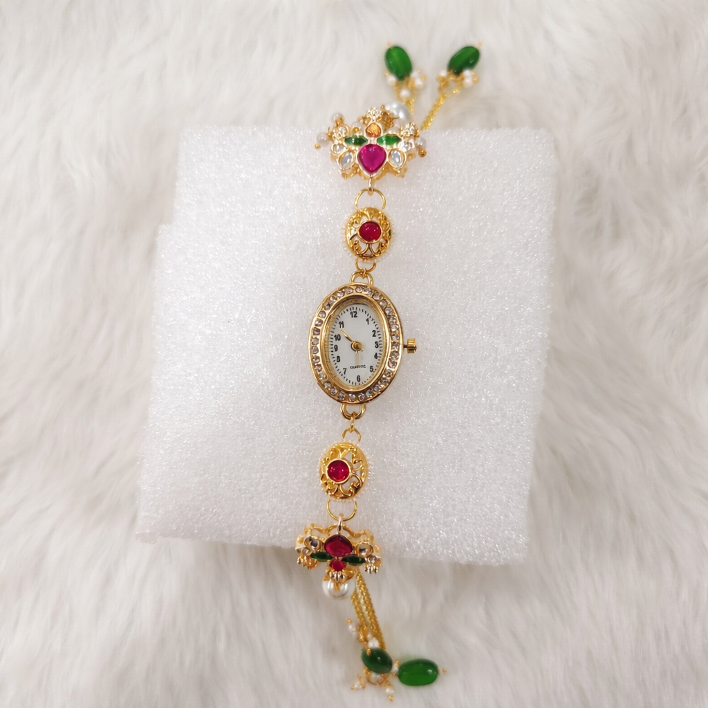Ethnic Jewelry Style Wrist Watch with Stone & Pearl Detailing
