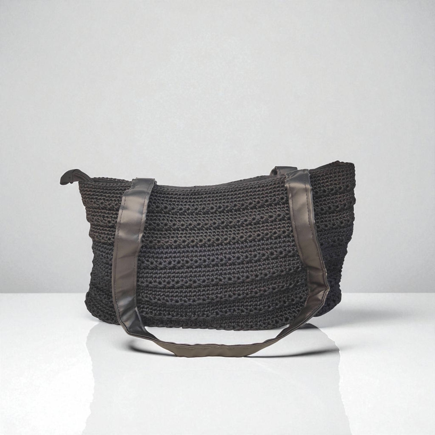 Add timeless charm to your wardrobe with this Handmade Black Crochet Shoulder Bag. Designed with sturdy straps and a spacious interior, this everyday tote is perfect for work, shopping, travel, or casual outings. Its elegant black crochet texture blends durability with style, making it a versatile accessory for women. Lightweight yet strong, this handcrafted bag is ideal for those who love eco-friendly, artisanal fashion with a modern, minimalist appeal.