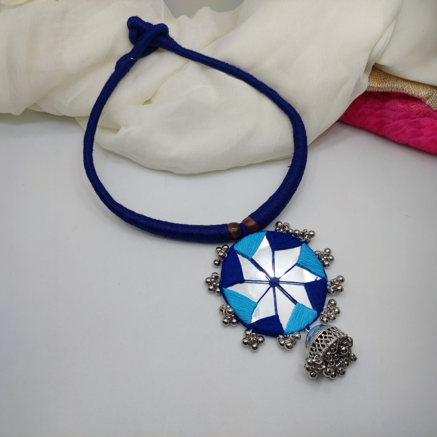Enhance your style with this Handmade Blue Mirror Work Tribal Necklace, crafted with intricate threadwork, round mirror detailing, and antique silver beads. This boho ethnic statement jewelry is perfect for weddings, festivals, parties, and casual occasions. Lightweight and versatile, it pairs beautifully with sarees, lehengas, kurtis, and fusion outfits. A unique handcrafted piece, this necklace is ideal for women who love bold, artistic, and traditional jewelry with a modern bohemian touch.