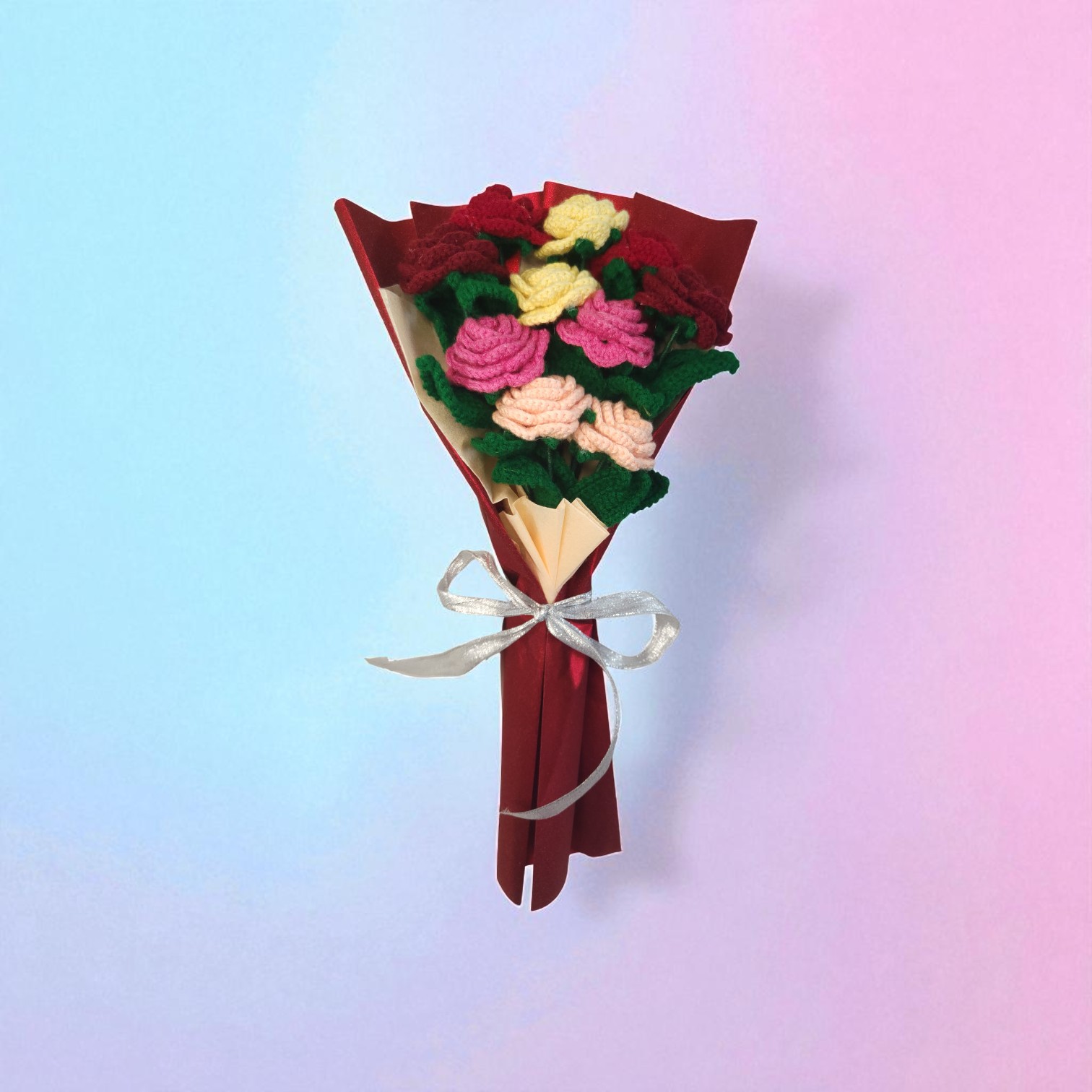 Handmade Crochet Flower Bouquet – Colorful Knitted Roses Wrapped Gift for Special Occasions