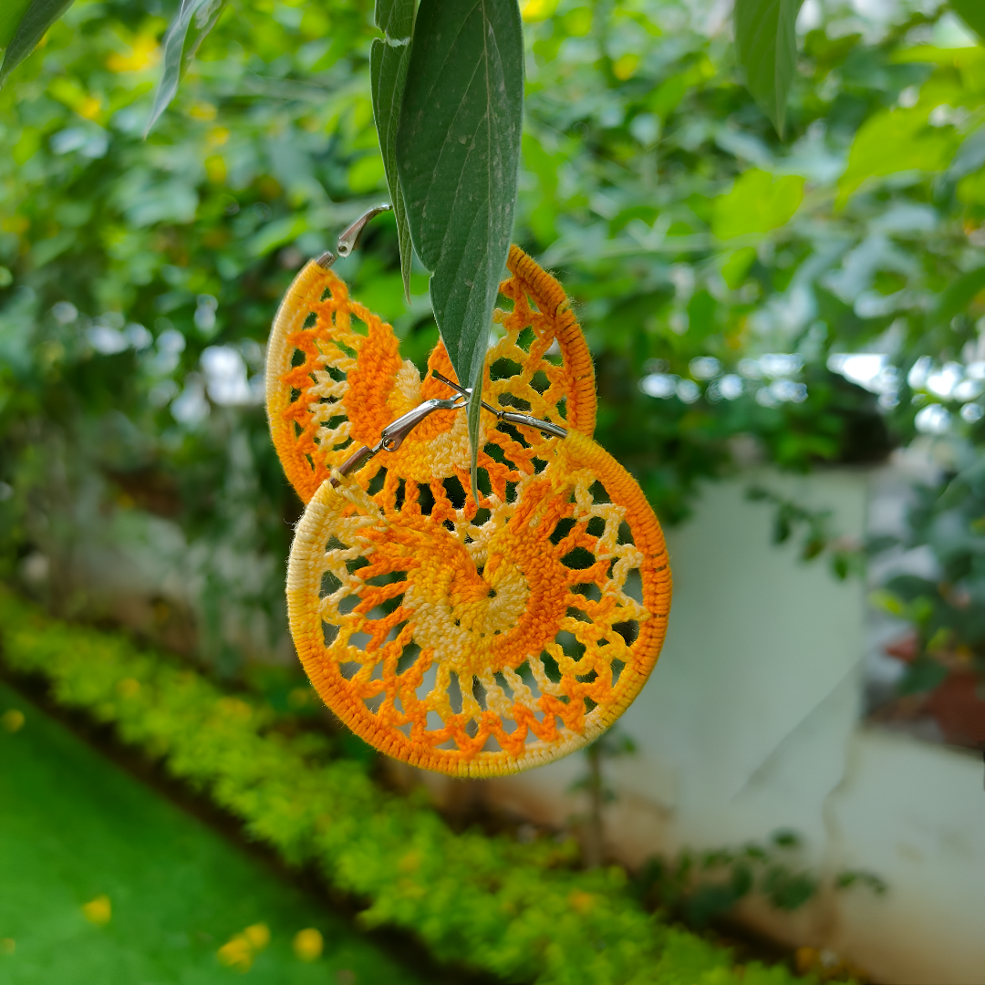 Brighten your look with these handmade crochet hoop earrings, crafted in vibrant yellow tones for a fresh boho vibe. Lightweight and comfortable, they are perfect for daily wear, vacations, or festive occasions. The intricate crochet pattern adds a unique handmade charm, making them a standout accessory. Easy to style with ethnic or casual outfits, these earrings bring elegance, color, and personality to your jewelry collection.