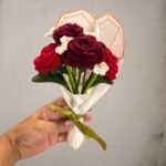 This elegant handmade crochet bouquet features beautifully crafted red and maroon knitted roses accented with delicate white flowers and lush green leaves. Wrapped in premium decorative paper and tied with a ribbon, it offers a timeless, eco-friendly alternative to fresh flowers. Perfect for Valentine’s Day, anniversaries, birthdays, or heartfelt gifting, this long-lasting bouquet adds warmth, romance, and handcrafted charm to any occasion.