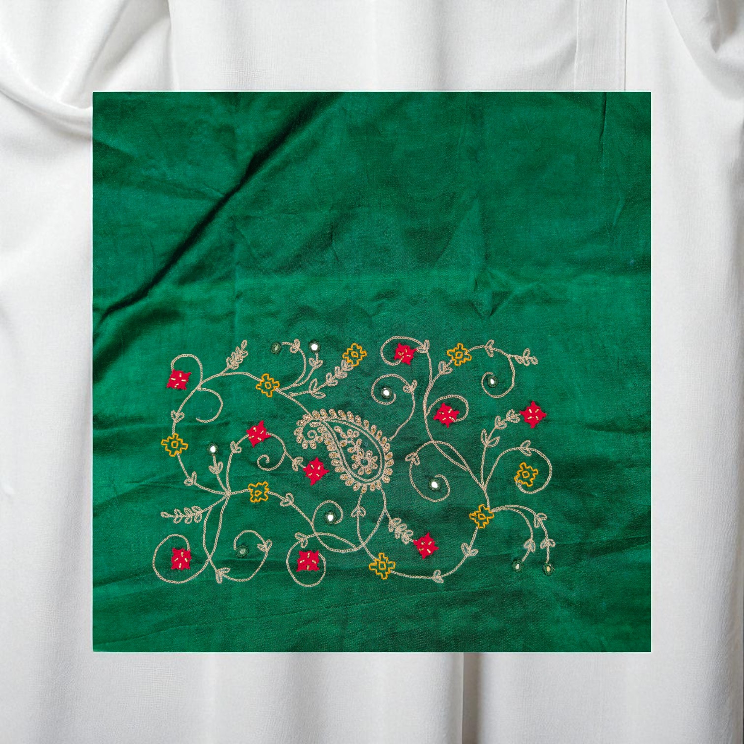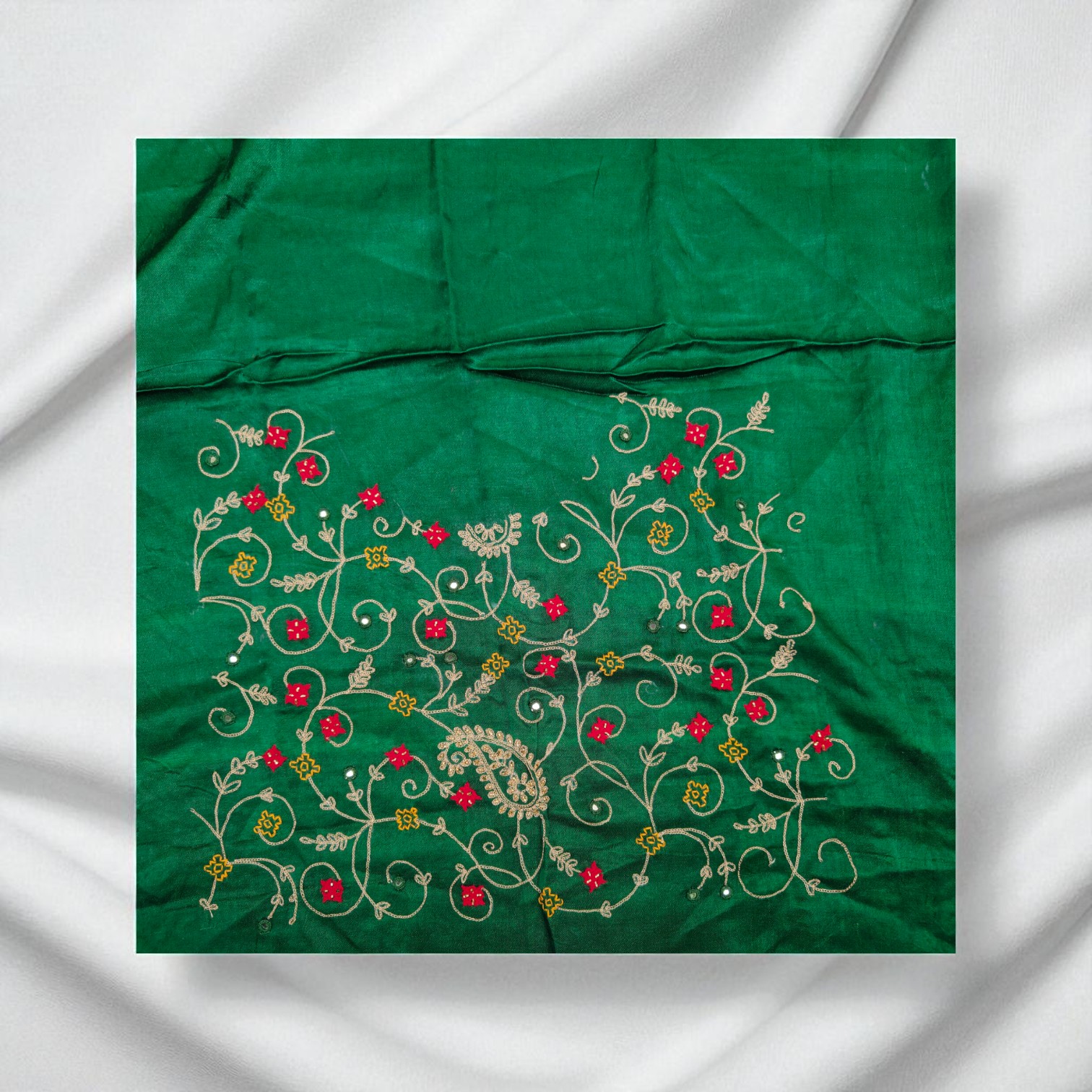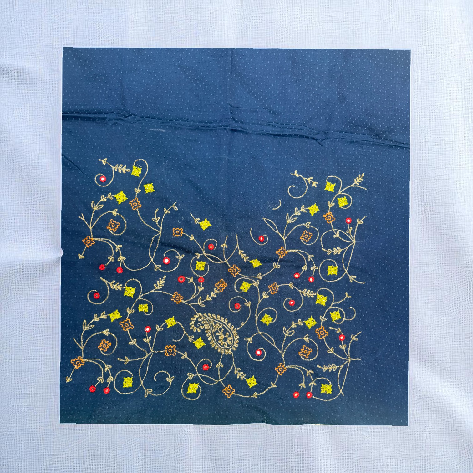 Handmade Embroidered Fabric Piece – Traditional Ethnic Design for Dressmaking, Craft, and Home Decor
