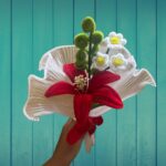 This elegant handmade floral bouquet features a striking red lily complemented by delicate white daisies and green accents, beautifully wrapped with soft decorative fabric and ribbon. Designed for lasting beauty, it’s a perfect eco-friendly alternative to fresh flowers. Ideal for gifting on birthdays, anniversaries, weddings, or festive occasions, this bouquet adds a graceful, timeless charm to any celebration or home décor setting.