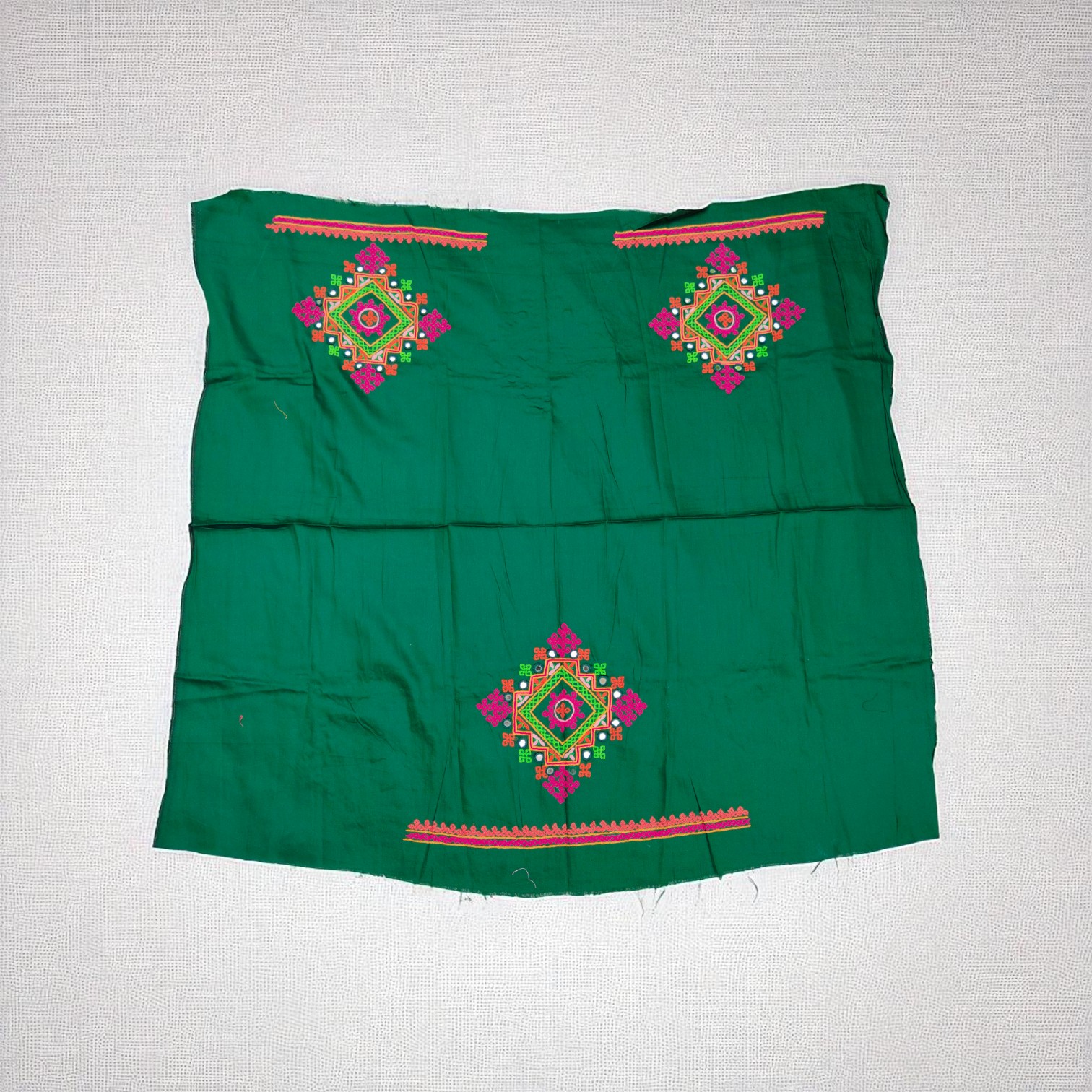 Add a touch of tradition to your ethnic collection with this Handmade Green Cotton Fabric featuring vibrant geometric embroidery in pink, yellow, and multicolor threads. Perfect for blouse making, saree styling, or custom ethnic wear, this fabric blends comfort with artistry. The detailed embroidery enhances its elegance, making it ideal for festive occasions, weddings, and cultural events. A unique choice for those who love authentic handcrafted textiles.