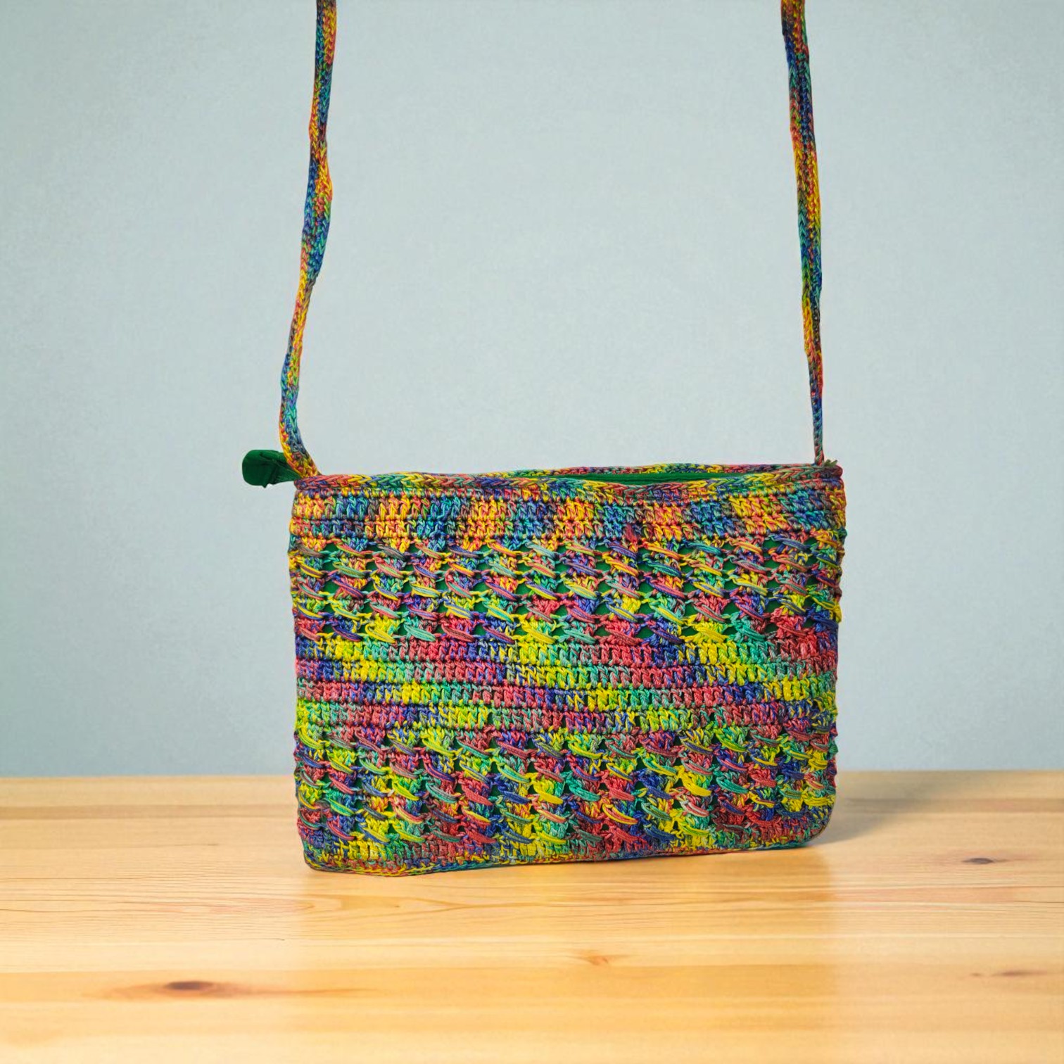 Add a pop of color to your look with this handmade multicolor crochet shoulder bag, designed in a vibrant boho style. Featuring a lightweight crossbody strap, this purse is both practical and eye-catching, perfect for casual outings, travel, or festivals. The unique crochet pattern makes it a versatile accessory that complements any outfit. A must-have boho crossbody bag for women who love chic handmade fashion.