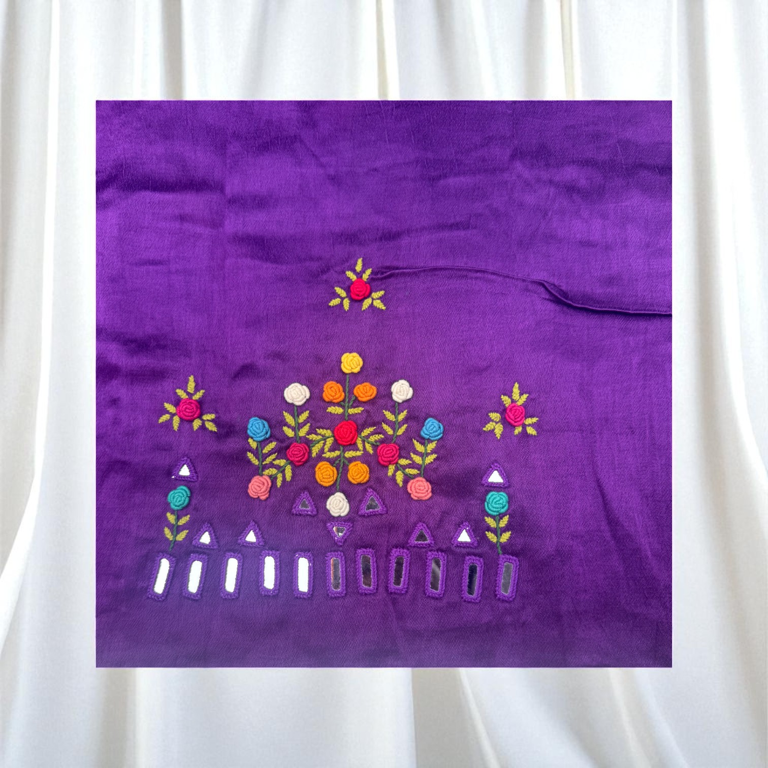 Add elegance to your creations with this Handmade Purple Embroidered Fabric featuring intricate floral designs. Crafted with fine embroidery, this ethnic material is perfect for dressmaking, kurti, blouse, and creative craft projects. Its rich traditional detailing enhances home décor items like cushion covers, table runners, or wall hangings. Ideal for those who value artisanal craftsmanship, this fabric brings timeless charm and cultural beauty to every design.