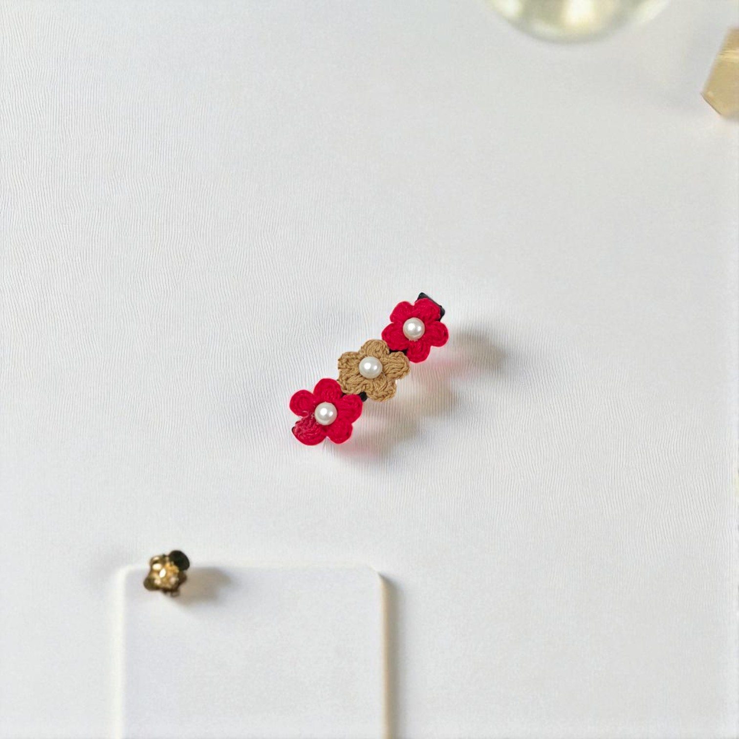 Add timeless charm to your look with this Handmade Red and Beige Crochet Floral Hair Clip featuring delicate pearl centers. Designed for girls and women, it blends elegance with handcrafted beauty. Ideal for parties, traditional events, or everyday wear, this lightweight accessory offers a secure hold and stylish flair. The perfect blend of grace and comfort, it also makes a thoughtful gift for any special occasion.