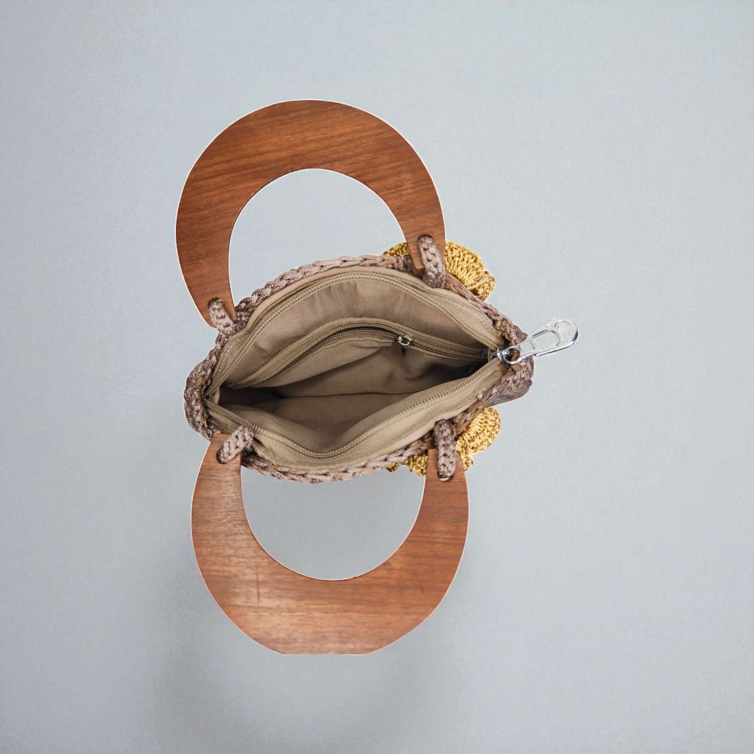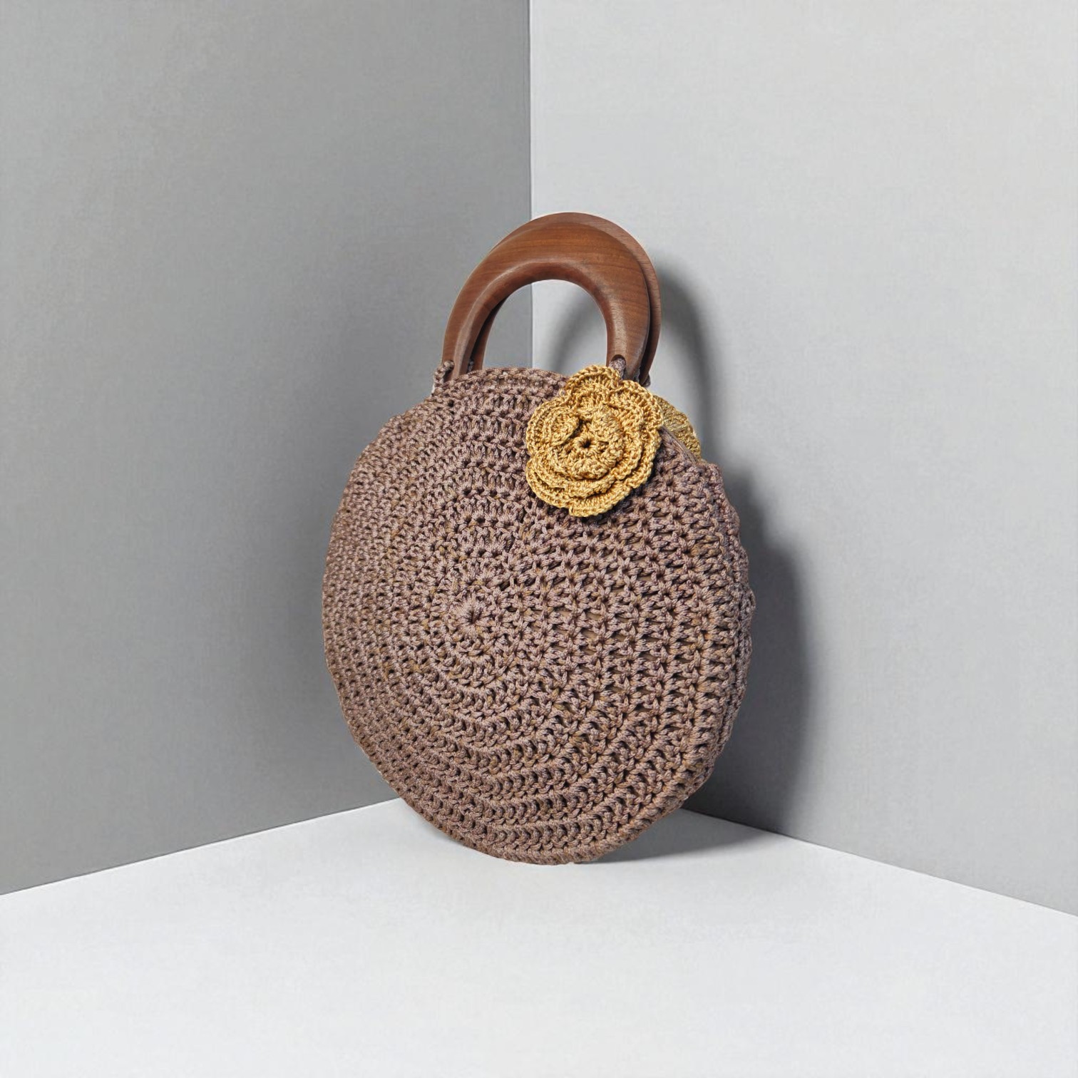 Showcase your unique style with this Handmade Round Crochet Bag featuring a sturdy wooden handle and a charming flower accent. Designed with intricate crochet craftsmanship, this stylish boho tote is perfect for casual outings, beach trips, or everyday use. Lightweight yet durable, it offers both fashion and function. The natural wooden handle adds elegance, while the floral detail enhances its charm, making it an ideal accessory for women who love handmade boho fashion.