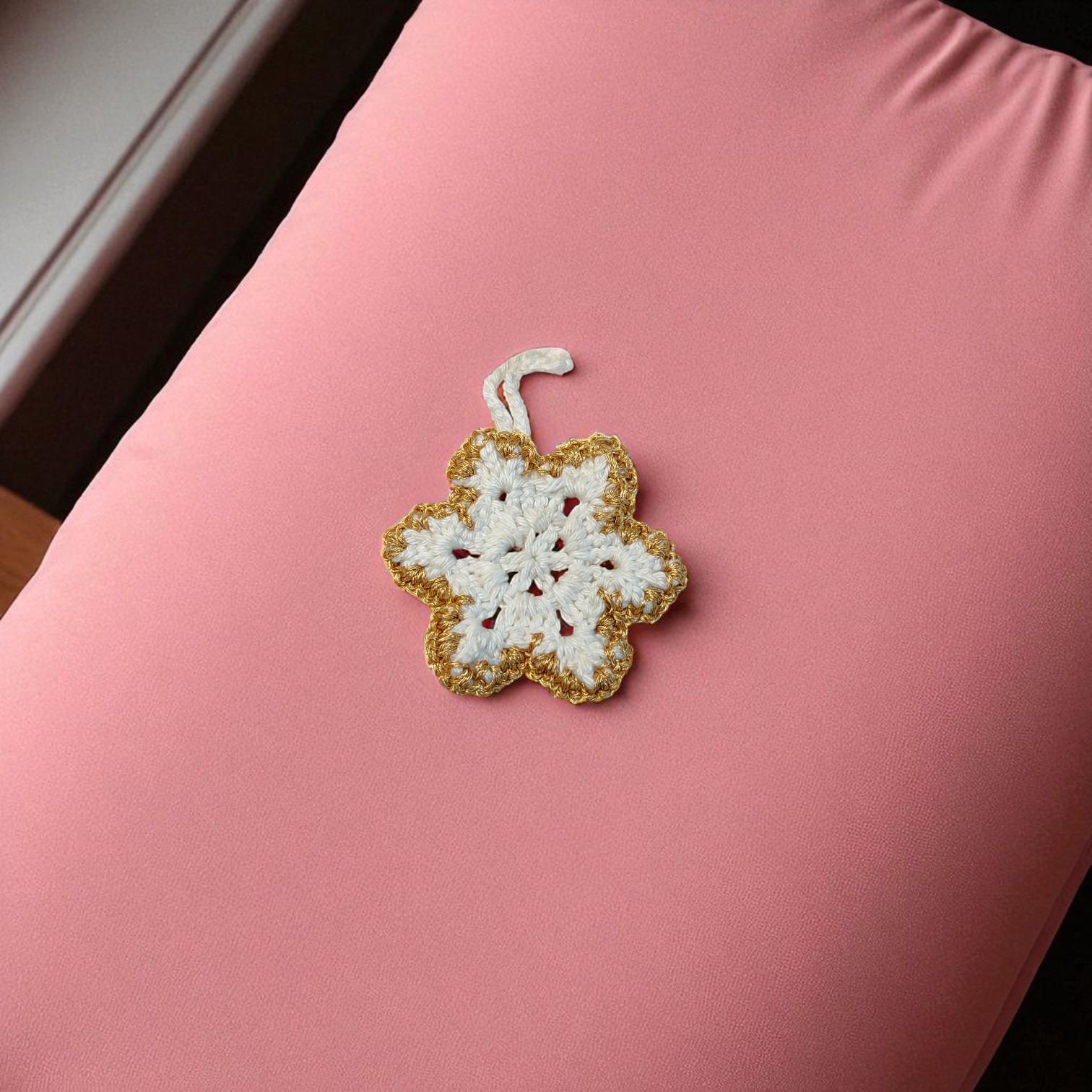 Enhance your space with this Handmade White and Gold Crochet Flower Ornament, a perfect blend of elegance and craftsmanship. Featuring intricate floral patterns and shimmering gold edges, it’s ideal for decorating gifts, walls, or festive setups. Lightweight and charming, this hanging crochet piece adds a touch of handcrafted beauty to any occasion. Great for home décor, party accents, or thoughtful gifts, it brings warmth and style wherever it’s placed.