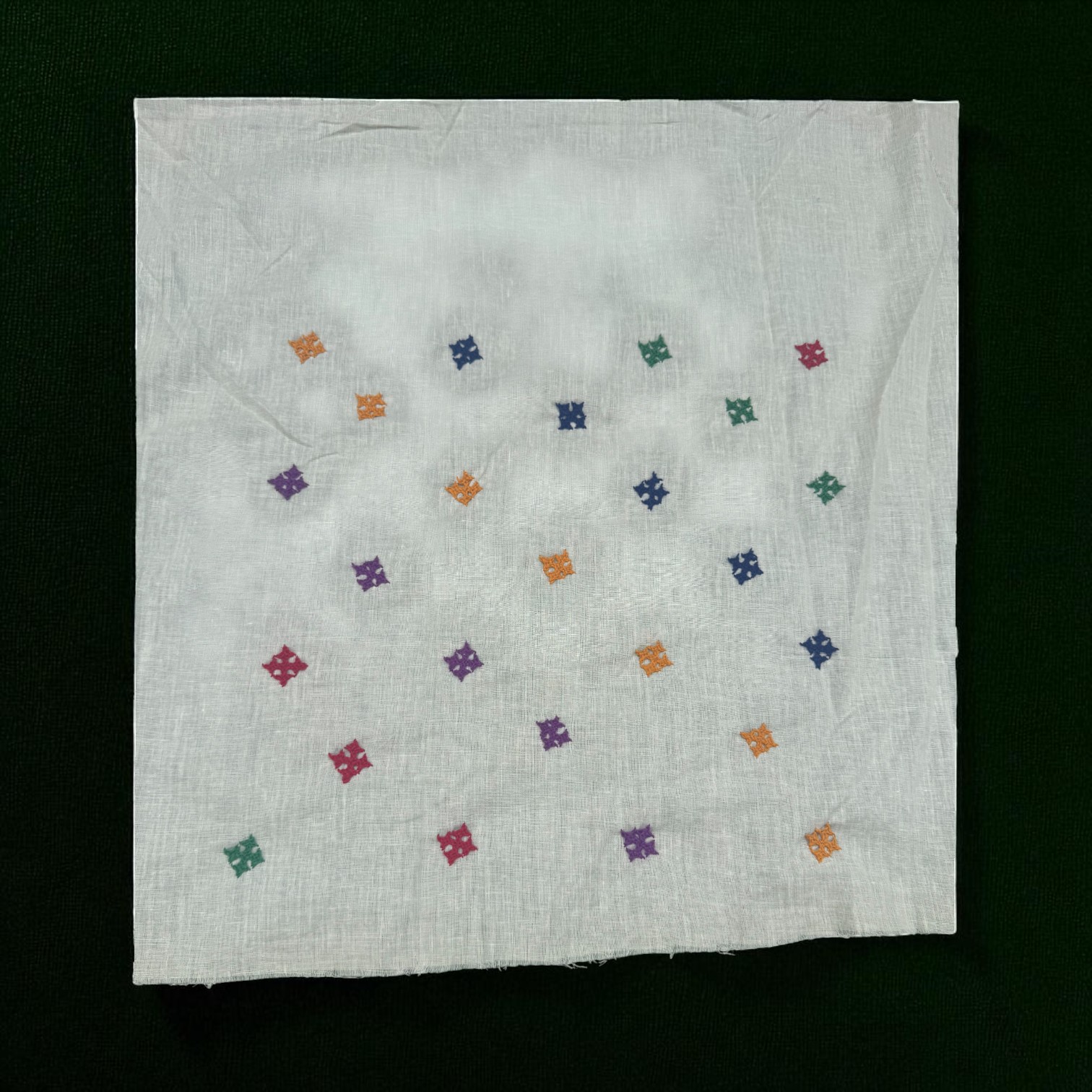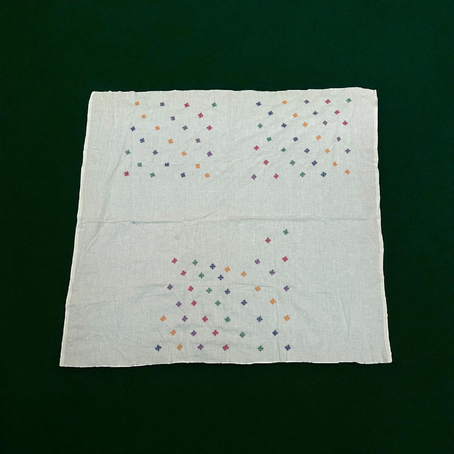 Handmade White Cotton Fabric with Multicolor Geometric Embroidery is a perfect choice for creating stylish blouses and ethnic wear. Crafted with precision, the colorful embroidered diamond motifs add a vibrant touch to the soft cotton base. This fabric beautifully blends traditional hand embroidery with modern design, making it ideal for saree blouses, kurtis, and festive outfits. Durable, breathable, and elegant, it’s an excellent addition to your handcrafted ethnic collection.